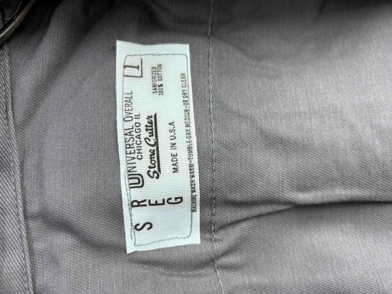 ■アイテム解説 老舗ワークウェアメーカー、UNIVERSAL OVERALLの希少ライン「Stone Cutter」の長袖ワークシャツです。首元のラベルに「MADE IN U.S.A.」の刻印があるヴィンテージ個体。当時のアメリカ製らしい質実剛健な作りと、ワークスタイルに馴染むクラシックなグレーカラーが魅力の一着です。