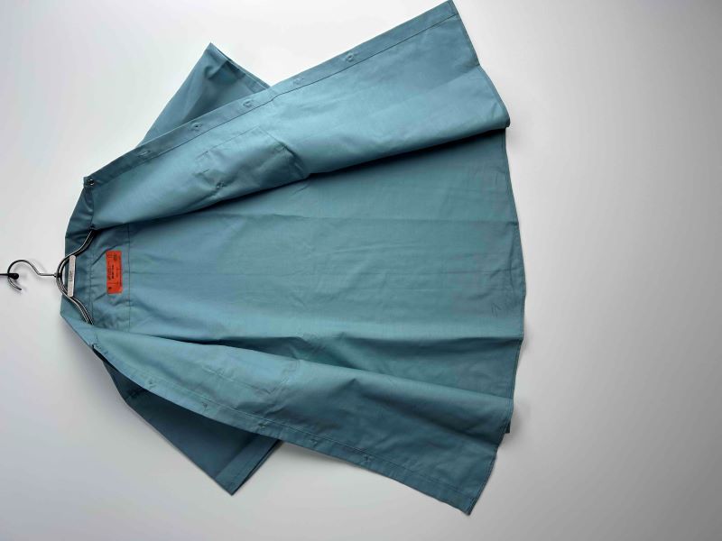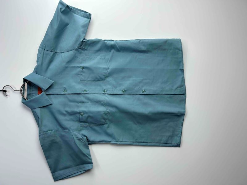 ■アイテム解説 老舗ワークウェアメーカー、UNIVERSAL OVERALLの半袖ワークシャツです。首元のラベルに「MADE IN USA」の表記があるヴィンテージ個体。形態安定性に優れた「DURABLE PRESS」仕様のデッドストック品で、実用性と当時のアメリカ製らしい風合いを兼ね備えた一着です。