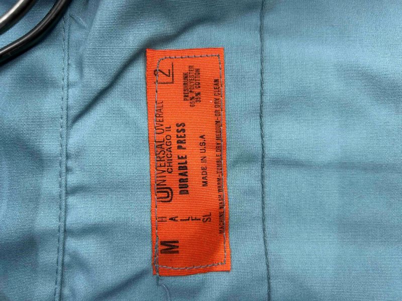 本品はUNIVERSAL OVERALLの海外倉庫にて保管されていた商品のため、材質や洗濯表示が英語表記となっております。そのため、日本での販売に際して、(株)ゲオにて日本語表記を作成しております。