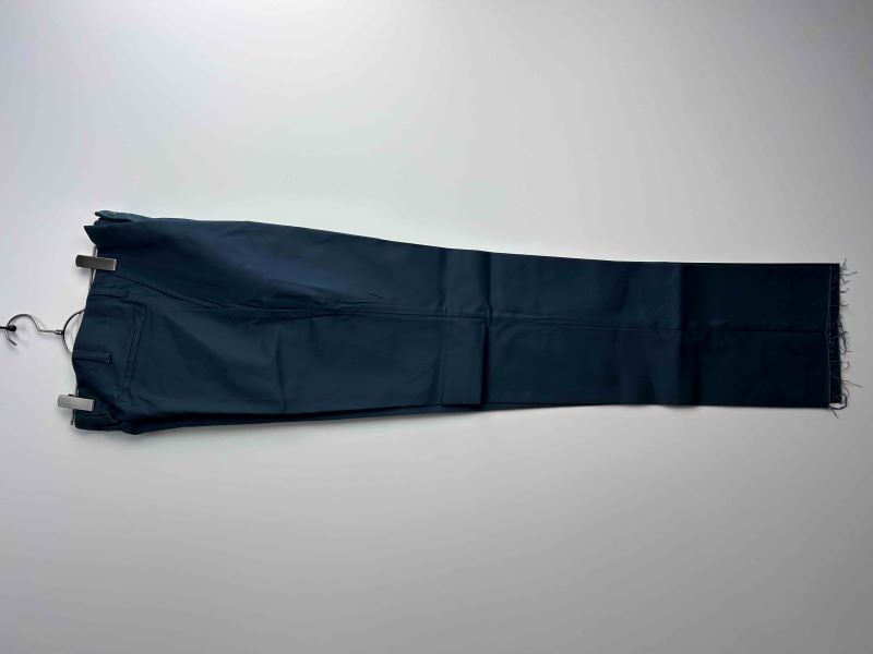仕様: Lot 946。美しいセンタープレス。フロントはL字ポケット、背面は左のみボタン付きパッチポケット。裾は未処理(切りっぱなし)の状態です。