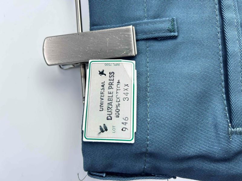 老舗ワークウェアメーカー、UNIVERSAL OVERALLの希少ライン「Stone Cutter」のワークトラウザーズです。当時のフラッシャー(紙タグ)が残る完全なデッドストック品。現行品では珍しいコットン100%の厚手な生地を使用しており、米国製の資材をホンジュラスで組み上げた、非常にタフな作りが魅力の一着です。