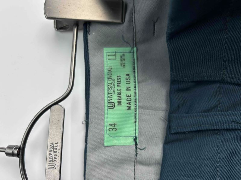 本品はUNIVERSAL OVERALLの海外倉庫にて保管されていた商品のため、材質や洗濯表示が英語表記となっております。そのため、日本での販売に際して、(株)ゲオにて日本語表記を作成しております。