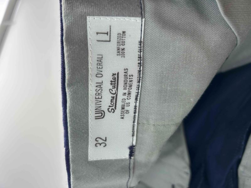 本品はUNIVERSAL OVERALLの海外倉庫にて保管されていた商品のため、材質や洗濯表示が英語表記となっております。そのため、日本での販売に際して、(株)ゲオにて日本語表記を作成しております。