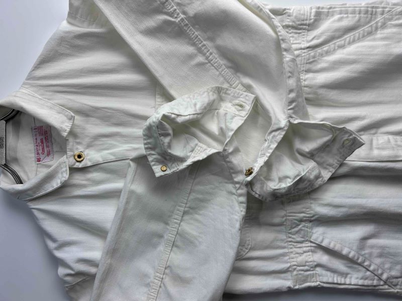 ホワイトカラー特有の目立つ黄ばみや大きな汚れは見受けられず、生地のハリもしっかりと残っています。